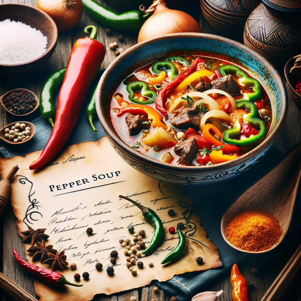 Die Pepper Soup ist ein delikates und schmackhaftes Gericht, das die Aromen und Farben Liberias wunderbar zur Geltung bringt. Mit ihrer Schärfe und den frischen Zutaten ist sie nicht nur ein Genuss für den Gaumen, sondern auch ein Symbol für die afrikanische Gastfreundschaft. Egal, ob Sie sie als Zeichen der Verbindung oder als individuelles Gericht zubereiten – diese Suppe wird Ihre Gäste beeindrucken. Probieren Sie es aus und bringen Sie ein Stück afrikanische Kultur direkt in Ihre Küche!
